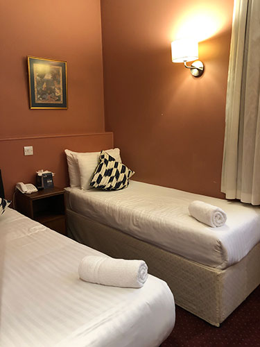 Comfortable accommodation: It was early winter, so not yet too cold. In fact, I was a little over-dressed in the warm stuff. I hadn’t been back to the UK since 2013, when I flew solo to present at a conference at Oxford University and then performed Scheherazade’s Sea at the World Stage Design Festival in Cardiff. This time, we were based in London. Dear project leader found a cosy little mini ‘hotel’ five minute’s walk from Paddington Station, perfectly located. From here, we made our day trips to Canterbury, Liverpool and Oxford.