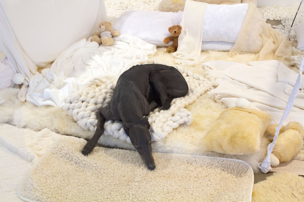 Lucy was (and remains) a dynamic creative influence on my professional work. The symbiotic nature of our relationship inspired my PhD dissertation about distinct Autistic elemental empathic resonance with non-human entities.5 Observing Lucy’s way of ‘sensing’ precipitated richer interpretations of Autistic sensory-cognitive experiences in my artistic practice. Lucy even helped me to design and choose the materials for Sonata in Z (2015),6 an immersive installation exploring sensory comfort from the Autistic paradigm. From this emerged one of my most popular research trajectories, Clement Space,7 about finding and establishing conducive space for respite and restoration.